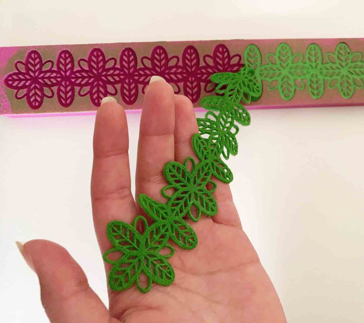 - Para realizar ENCAJES FLEXIBLES antes de colocar el producto (Bordeador 3D) se recomienda aplicar aceite de bebé con un pincel, colocando en todas la hendiduras del encaje. Luego, con la ayuda de una espátula colocar el bordeador.